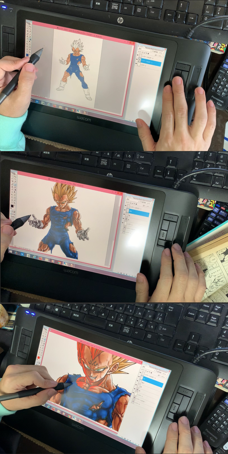 ——¿Puedes contarnos cómo agregas color? ¿Y qué aspectos de colorear a Majin Vegeta específicamente tuviste en cuenta?
