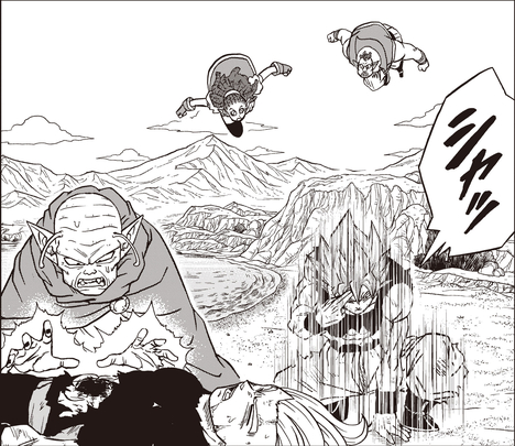 Habiéndose vuelto incluso más fuerte que Granolah, Gas abrumó a Goku y a los demás con facilidad. Granolah fue noqueado por un poderoso ataque de Gas, pero Vegeta corrió en su ayuda y pronunció un discurso conmovedor que le dio al cerealista la determinación que necesitaba para ponerse de pie y enfrentar a Gas una vez más. A partir de ahí, Granolah luchó cara a cara contra Gas en un enfrentamiento total, ¡e incluso lanzó un ataque devastador contra el Heeter!