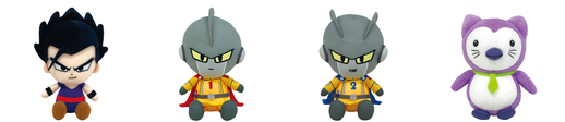 Ya sea que quieras sentarlos en tu habitación o llevarlos a una aventura, ¡estos juguetes de peluche Chibi tienen el tamaño perfecto! La alineación incluye cuatro personajes de Dragon Ball Super: SUPER HERO: Ultimate Gohan, Gamma 1, Gamma 2 y Penkon, ¡el peluche que aparece en la película!