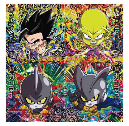 ¡Las estrellas de la nueva película, Gohan, Piccolo, Gamma 1 y Gamma 2, llegan en hermosas pegatinas brillantes!