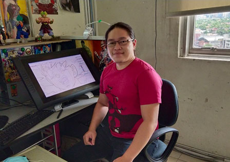 He estado haciendo lo que se conoce como la animación "intermedios" para Toei Animation Filipinas desde 2007. Los intermedios son los fotogramas que conectan "animaciones clave", los dibujos principales de una animación, para dar movimiento a los personajes. También reviso los intermedios dibujados por otros artistas. Ese rol implica verificar para asegurarse de que la animación esté bien dibujada y no contenga ningún error.