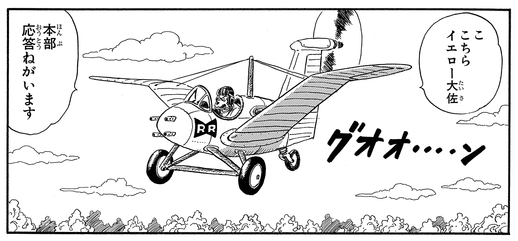 Desafortunadamente para el Colonel Yellow, Goku estaba volando alrededor del área en busca de la Esfera del Dragon Ball de Cuatro Estrellas. Determinó que Yellow era uno de los malos debido a su avión Red Ribbon Army y luego procedió a derribarlo del cielo con un solo golpe atronador.