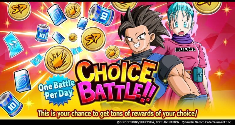 ¡Puedes elegir entre los cuatro tipos de batallas en las que puedes puntuar elementos como Eliminadores de tragamonedas, Medallas SPARKING, Boletos de salto y más!
