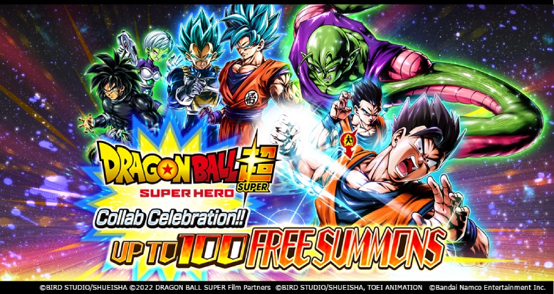 Para conmemorar la colaboración entre Legends y Dragon Ball Super: SUPER HERO, ¡esta invocación se puede jugar hasta 100 veces gratis!