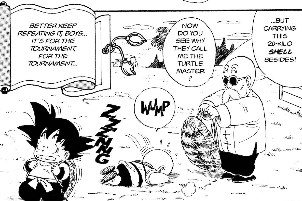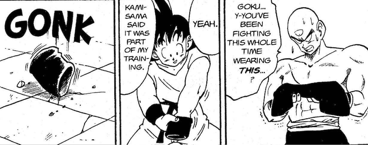 Dragon Ball tiene varias escenas de entrenamiento de personajes mientras cargan pesos pesados