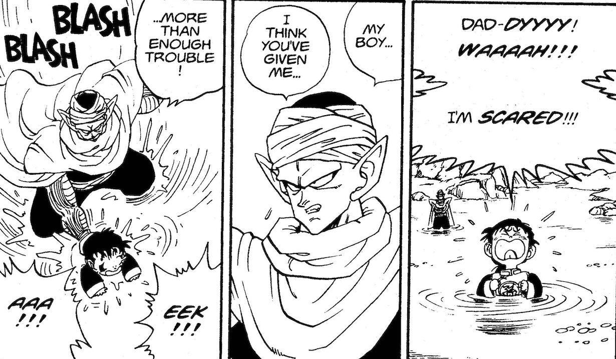 Fue muy parecido a cuando apareció por primera vez el hijo de Goku, Gohan, solo para que Piccolo se lo llevara y lo obligara a entrenar. Debe haber sido muy difícil para él, pero pasar por todo ese entrenamiento lo hizo mucho más fuerte mentalmente.Fue fascinante ver a Gohan desarrollar no solo su físico y su conjunto de habilidades, sino también su mente. Encontré eso realmente alentador como estudiante de secundaria.