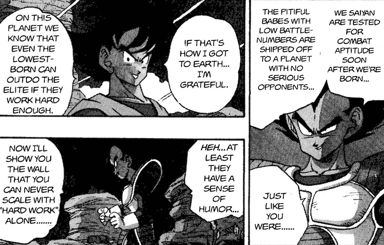 Matsuzaka: La parte donde Goku dice, "En este planeta sabemos que incluso los nacidos más bajos pueden superar a la élite si trabajan lo suficiente, "la primera vez que se enfrenta a Vegeta. Aunque no creía que pudieravencer a su oponente, creía que era posible superar sus limitaciones con suficiente esfuerzo. Eso siempre me dio coraje.