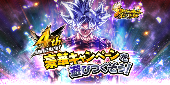 Gracias a todos los jugadores de Dragon Ball Legends , hemos llegado a nuestro cuarto año desde el lanzamiento. Para celebrarlo, estamos organizando una Campaña del 4.° Aniversario repleta de eventos en los que puedes obtener montones de personajes y artículos increíbles. Y lo que es más, un personaje que todos han estado esperando, Ultra Instinct Goku, se une a la lucha por fin.