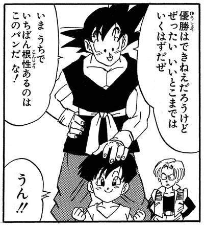 Habiendo entrenado desde una edad muy temprana, Pan ya tiene tanto talento que puede usar el Buku-jutsu (técnica de levitación) para volar alrededor del mundo.