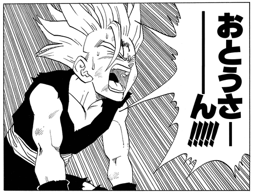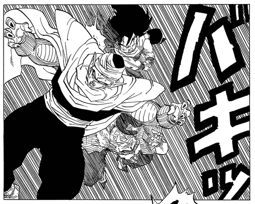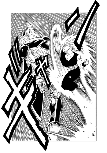 Lanza un feroz ataque contra Vegeta, que Gohan detiene a costa de una grave herida en su brazo izquierdo. Justo cuando parece que se ha perdido toda esperanza, la voz de Goku resuena en los oídos de Gohan desde el reino del más allá.