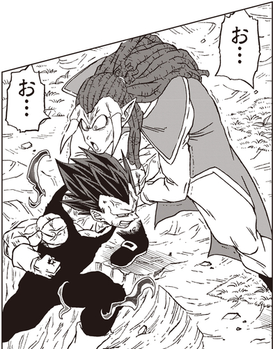 Granolah sufrió una herida crítica a manos del recién despertado Gas. Sin embargo, Goku intervino para intervenir después de recibir lo último de la energía de Vegeta.