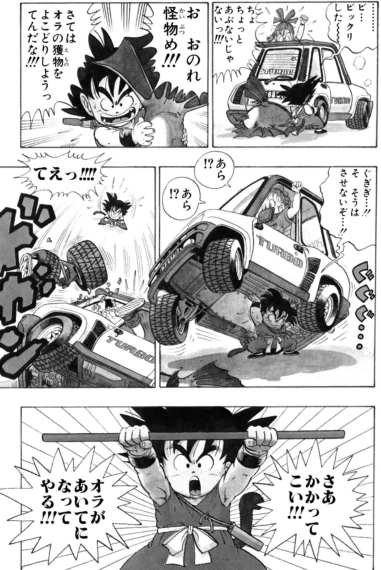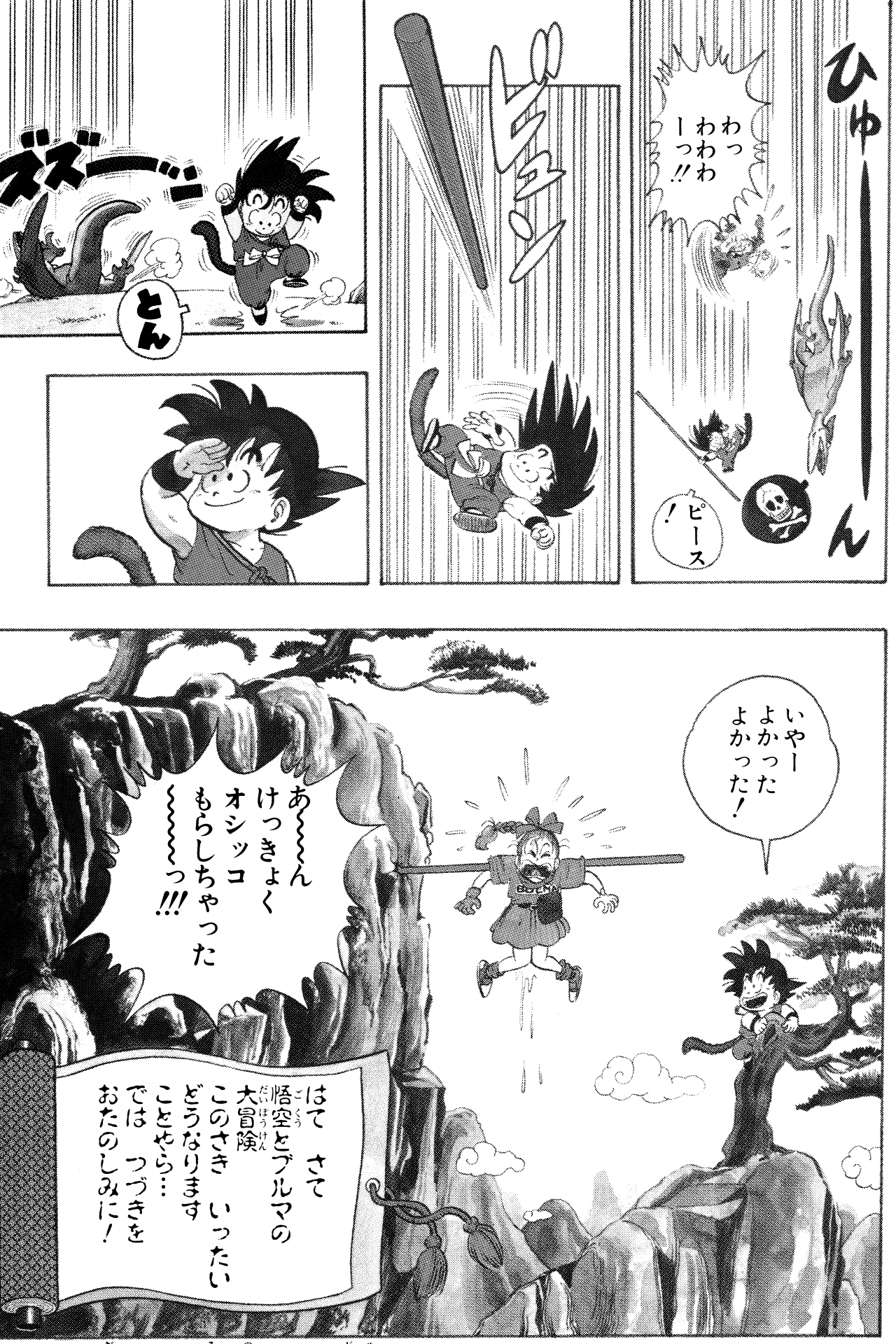 ¡¿Sabías que en Japón el manga Dragon Ball es famoso por su exorbitante empleo de signos de exclamación ?! Al igual que en inglés, los signos de exclamación japoneses son un símbolo útil para transmitir el tono en la escritura, como una emoción fuerte, énfasis y sorpresa. Pero, ¿puede haber demasiado de algo bueno? Echemos un vistazo al cuento 1 de Dragon Ball tal como apareció en la versión japonesa y cuentemos cuántos "!" ¡fueron usados!