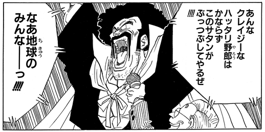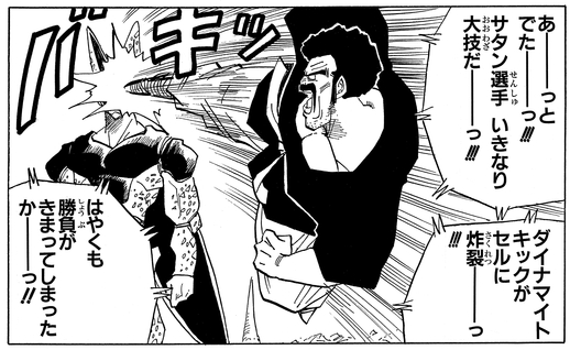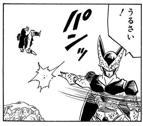 El Campeón del Mundo está tan convencido de su superioridad que desata una ráfaga de ataques contra Cell, quien no siente nada pero se enfada lo suficiente como para ahuyentar a Mr. Satan como un insecto.