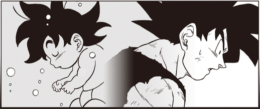 Al enterarse de la batalla de su padre, Goku recuerda un recuerdo de su primera infancia. Vegeta también se da cuenta de que había estado llevando la carga equivocada todo este tiempo.