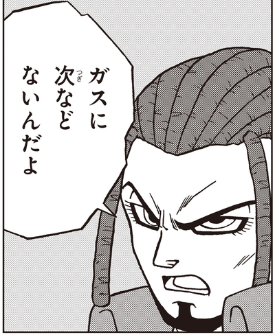 A través de su ida y vuelta, Granolah parecía ganar la partida. Inspeccionando la batalla y determinando que su hermano podría perder, Elec decidió cambiar las tornas a su favor quitando el limitador que usa Gas para mantener sus instintos primarios bajo control. Con su poder sin restricciones desatado, Gas perdió el control de sí mismo y se desató salvajemente, ¡atacando a amigos y enemigos por igual!