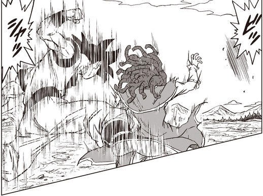 ¡Goku logró crear una apertura suficiente para llevar a cabo su técnica característica de Teleportation , llevando su lucha a través de múltiples planetas antes de dejar a Gas varado en un mundo distante y transportarse de regreso al Planet Cereal! Luego, Goku tomó a Granolah gravemente herido y se retiró a la casa de Monaito.