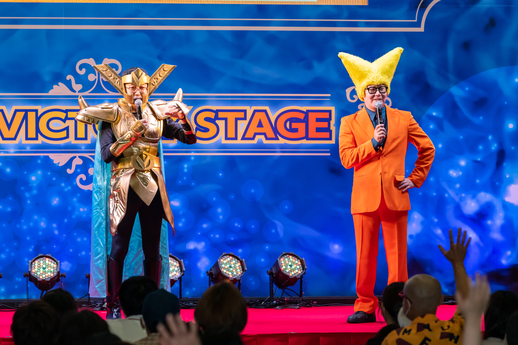 Entre los segmentos, también se reprodujeron en el escenario imágenes de una entrevista entre King Iyoku, Masako Nozawa y Toshio Furukawa.
