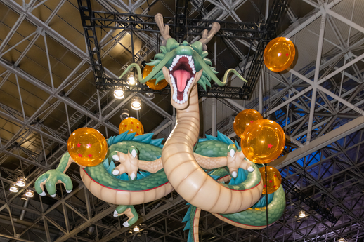 ¡El centro de eventos también contó con globos gigantes de Goku, Shenron y otros! De hecho, el lugar de la foto de Dragon Ball Super: SUPER HERO con Ultimate Gohan y Piccolo estaba ubicado justo debajo del globo de Shenron.