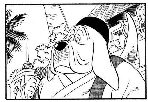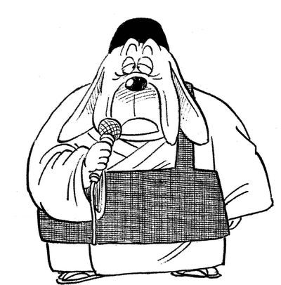 Este perro de pocas palabras es el honorable maestro del templo donde se lleva a cabo el Tenkaichi Budokai .