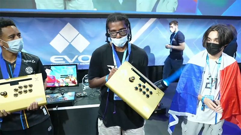 La ceremonia de entrega de premios se llevó a cabo después de la gran final, donde los siguientes tres mejores concursantes recibieron resplandecientes controles de arcade de color dorado: Yasha de Francia (tercer lugar, en la imagen de la izquierda), Nitro de EE. UU. (segundo lugar, en el centro de la imagen) y Wawa de Francia (1er lugar, en la foto a la derecha). ¡Esperamos ver a estos tres continuar en Dragon Ball FighterZ World Tour 2022-2023!