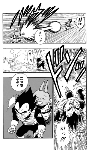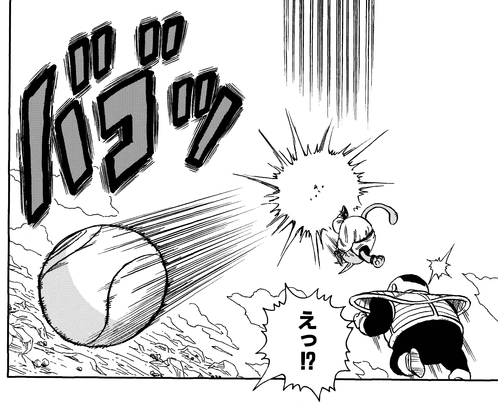 ¡Mientras el juego está en marcha, una cápsula espacial de Frieza Force invade la tierra! Con toda la emoción, Neko Majin lo confunde con un balón de fútbol y le da una poderosa patada de bicicleta, ¡enviándolo al suelo! ¡Y quién más debería emerger de la cápsula que el príncipe de todos los Saiyajin, Vegeta!