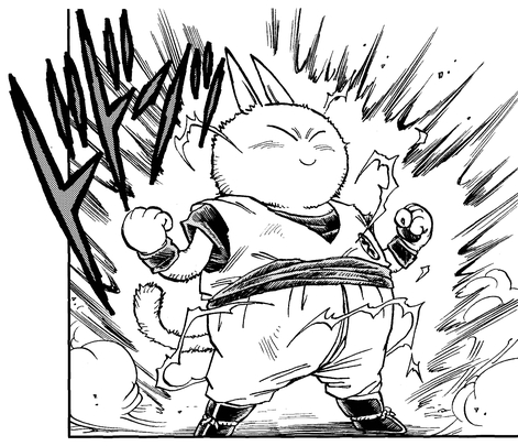 ¡Escuchar acerca de la increíble fuerza de Neko Majin hace que la sangre Saiyan de Vegeta bombee y se anime a luchar! Neko Majin está de acuerdo con la condición de que Vegeta lo trate con un delicioso okonomiyaki en caso de que el guerrero Saiyan pierda.