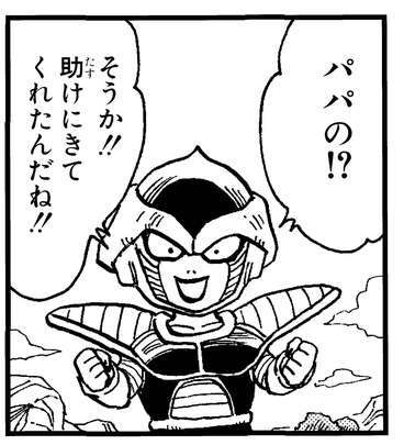 Parece que ha venido por Kuriza bajo las órdenes de Freezer. Al escuchar esto, Kuriza exclama: "¿Quieres decir papá?" ¿Podría esto significar que Kuriza es en realidad el hermoso bebé de Freezer?