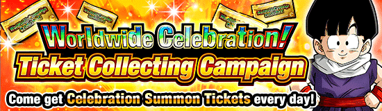 ¡"Celebración mundial! Campaña de recolección de boletos" está en marcha! ¡Inicie sesión en el juego, complete las misiones diarias y publique en las redes sociales durante el período de cuenta regresiva para obtener boletos de invocación de celebración! Los boletos de invocación de celebración se pueden usar para realizar invocaciones en "¡Celebración de la campaña mundial! Festival Dual Dokkan", ¡así que asegúrate de jugar todos los días y obtener toneladas de boletos de invocación de celebración!
