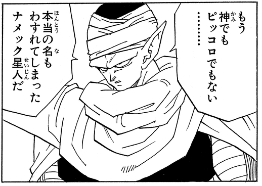 Después de sufrir una lesión en la cabeza cuando era joven, Piccolo olvidó su propio nombre y decidió seguir la frase pronunciada para abrir las puertas de la nave espacial Namekian , "Piccolo", que en lengua Namekian significa literalmente "otro mundo".