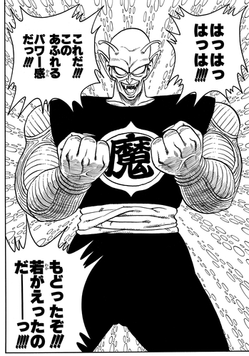 Antes de fusionarse con Nail, Piccolo rara vez adoptaba un enfoque verbal en la batalla, como cuando se le dieron tres horas de respiro contra Vegeta y Nappa , pero no mostró ninguna inclinación a hablar con ellos. En SUPER HERO, que por supuesto tiene lugar mucho después de que se fusionó con Nail, Piccolo intenta persuadir a Gamma 2 durante su duelo para que acepte que él no es el enemigo de Android. De hecho, no sería una exageración decir que un enfoque verbal en la batalla ahora se parece mucho a Piccolo y es representativo de su estilo de lucha.