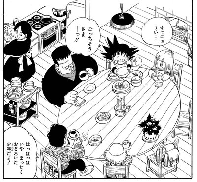 Goku logra salvar al alcalde e incluso se hace amigo del bondadoso Androide 8, y tienen una fiesta en la casa de Suno para celebrar. Suno está asombrado por el apetito del joven Saiyajin.