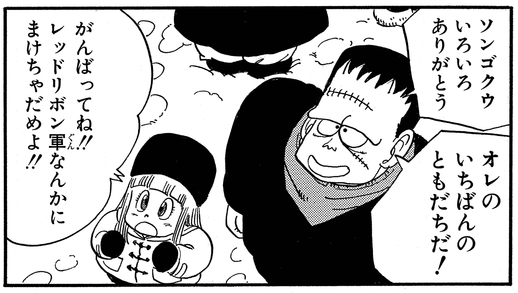 Cuando Goku dice que está buscando las Dragon Balls, Suno lo confunde con ser parte del Red Ribbon Army.