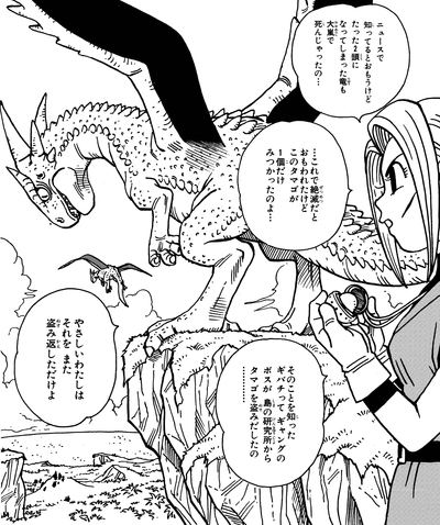 Luego, Haya le dice a Kajika que este huevo de dragón es el último de su tipo, y que el líder de la pandilla, también llamado Gibachi, está haciendo que su secuaz busque el huevo porque cree que beber la sangre de un dragón joven le otorgará increíbles. potestades.
