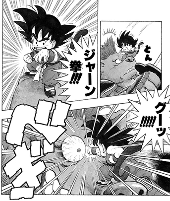Durante el 21º Tenkaichi Budokai, después de tener los tres golpes perfectamente bloqueados por Jackie Chun una vez, Goku cambia las cosas llamando "papel", ¡pero usando un golpe explosivo de "piedra" en su lugar! Habiéndose enamorado del truco más antiguo del libro, Jackie cae por un momento, pero pronto se recupera.