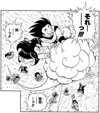 Cuando el torneo está todo dicho y hecho y Goku ha reclamado la victoria sobre Piccolo, la feliz pareja vuela hacia el cielo encima de Kintoun.