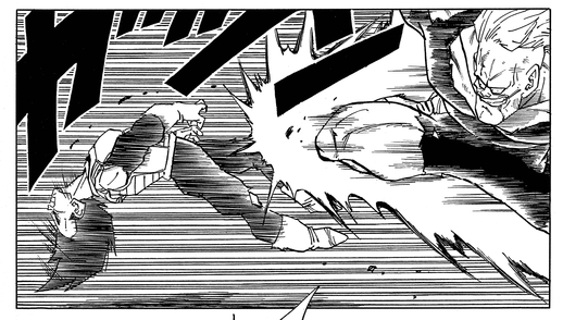 ¡ Krillin aprovecha esta oportunidad para atacar y logra romper varios de sus dientes!