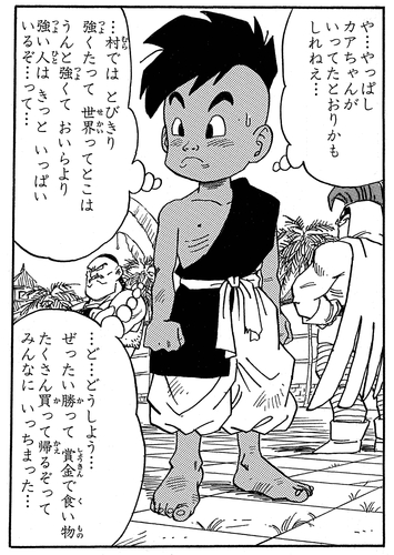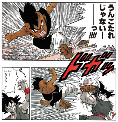 Ingresa al 28º Tenkaichi Budokai con el único propósito de usar el dinero del premio para comprar alimentos para su familia empobrecida.