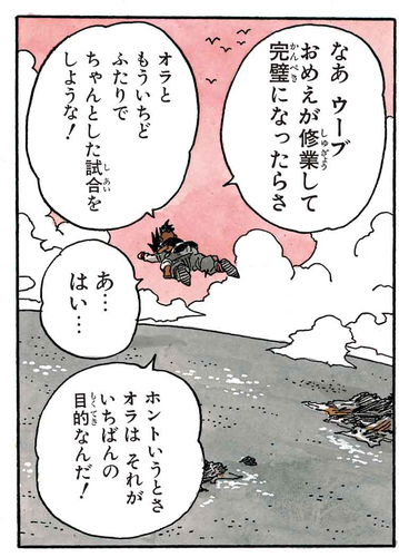Uub prometió tener una revancha con Goku una vez que hubiera entrenado y desarrollado completamente su fuerza.