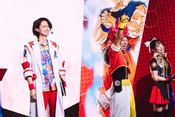 El productor de Dokkan Dokkan Battle , OMATSU (centro del escenario), anunció nueva información sobre los eventos de colaboración.