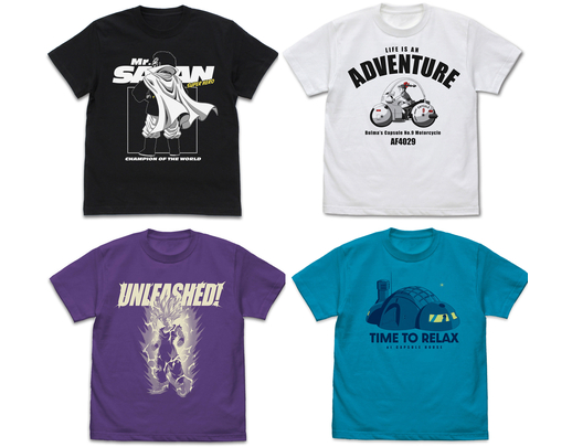 ¡El Mr. Satan luciendo tan suave como siempre, Gohan destrozándolo en el modo Super Saiyan , Bulma conduciendo su icónica motocicleta y la acogedora Capsule House hacen 4 diseños de camisetas increíbles!