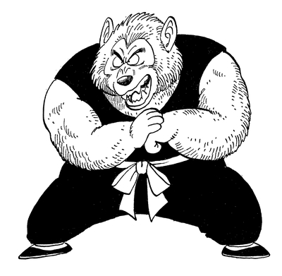 ¡En un intento desesperado por vengarse, el licántropo inverso incluso intenta atacar a su némesis con un cuchillo de aspecto desagradable! Si bien las armas generalmente están en contra de las reglas del torneo, Jackie Chun le dice al locutor que lo deje pasar y usa esta arma contra su posible atacante para levantarlo sin esfuerzo y arrojarlo lejos.