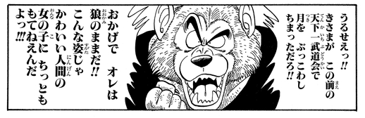¡Para enmendar la explosión de la luna, a Jackie Chun se le ocurre un plan para restaurar a Man-Wolf a su forma humana! Al utilizar la hipnosis y la parte posterior de la cabeza fortuitamente en forma de luna de Krillin, ¡la transformación es un éxito!