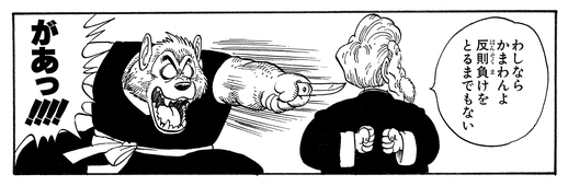 Jackie Chun contrarresta este ataque arrojando un objeto propio: ¡un hueso! Incapaz de ignorar sus instintos salvajes, Man-Wolf lo persigue fuera de los límites, lo que resulta en un ring-out.