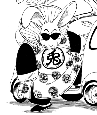 Su vehículo de elección muestra claramente una obsesión con la forma de conejo y presenta orejas, patas y una cola esponjosa. Incluso tiene el kanji de "Conejo" escrito en la puerta.