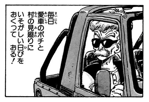 El anciano de Pon-Pon Village, Tetsunoshin Kataiwa, protege la paz y la santidad de su lugar de residencia paseando en su amado automóvil Pochi y vigilando cualquier irregularidad.