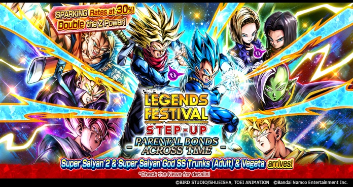 ¡Esta invocación presenta un nuevo personaje de LEGENDS LIMITED, Super Saiyan 2 y Super Saiyan God SS Trunks (Adult) y Vegeta! ¡En esta Invocación especial, todos los pasos tienen el doble de Z Power y una tasa de caída de SP del 30 %!