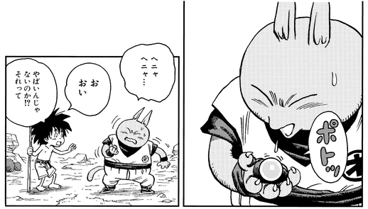Ahora completamente impotente, Neko Majin no tiene forma de enfrentarse a Usa Majin, pero justo cuando las cosas van de mal en peor, ¡el joven llama a Majin Buu!