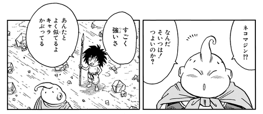 Sin embargo, el niño no se conmueve, afirmando que su amigo Neko Majin también es capaz de tal hazaña.