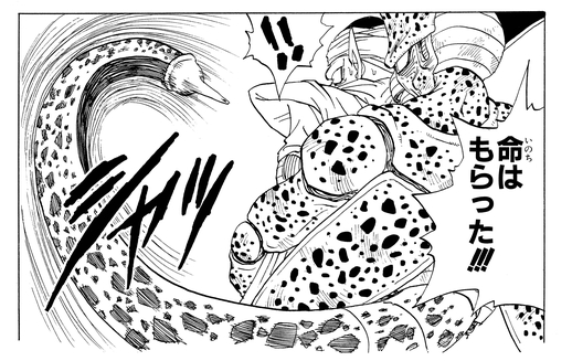 Cell atacó a las personas que vivían en Ginger Town y absorbió su fuerza vital para obtener energía. Mostró su increíble fuerza mientras dominaba incluso a Piccolo, que acababa de fusionarse con Kami.