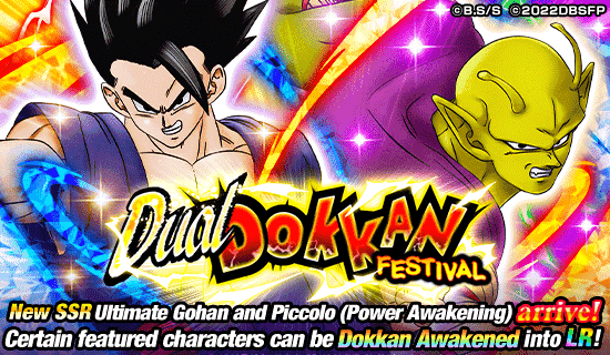 ¡Ya está en marcha un nuevo Festival Dual Dokkan! Dos estrellas de la película SUPER HERO finalmente subieron al escenario en Dokkan Battle como unidades SSR que pueden ser Dokkan Awakened hasta LR: [Will to Protect All] Ultimate Gohan y [New Form and Awakened Power] Piccolo (Power Awakening)! ¡Ambas unidades tienen habilidades de líder que potencian las unidades de la categoría de superhéroes más una categoría más, y las unidades con cualquiera de las dos también obtendrán un impulso adicional en sus estadísticas! ¡Cada uno de ellos también tiene una Habilidad Activa que pueden usar una vez que Dokkan Despierta a LR!